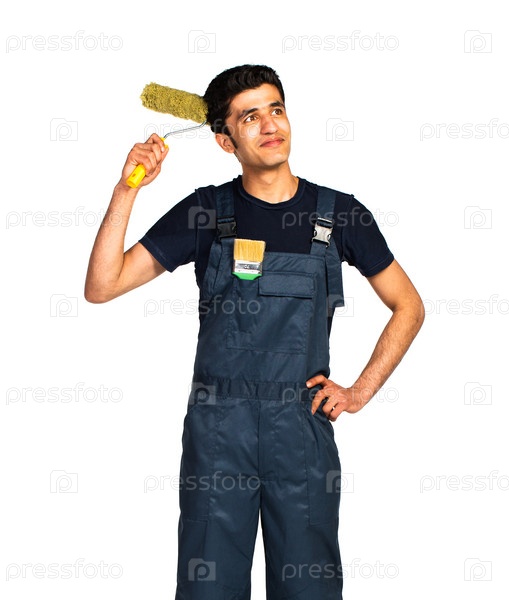 Ремонтник арабской национальности в комбинезоне на белом