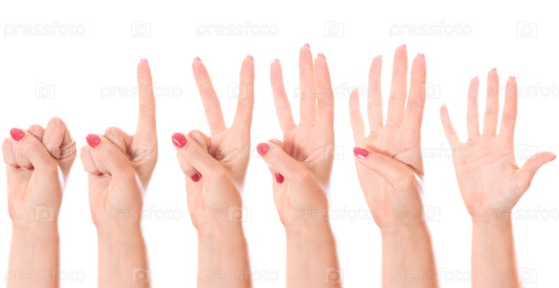 Рука, показывающая цифры от 0 до 5