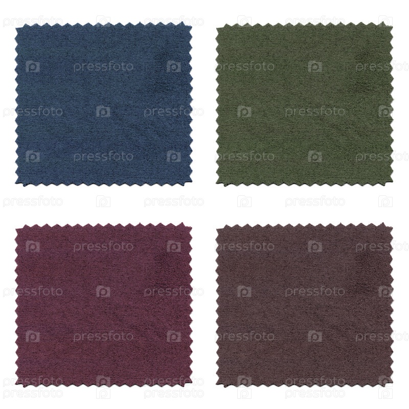 Синий, зеленый фиолетовый, коричневый образец ткани, изолированный на белом фоне