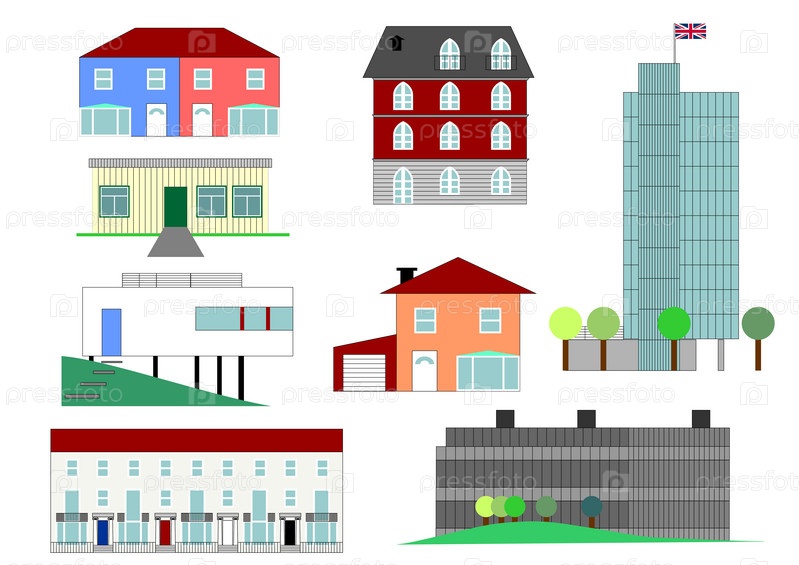 Набор домов в различных архитектурных стилях