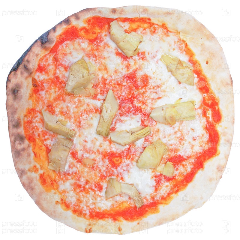 Итальянская пицца с артишоками, изолированная на белом фоне