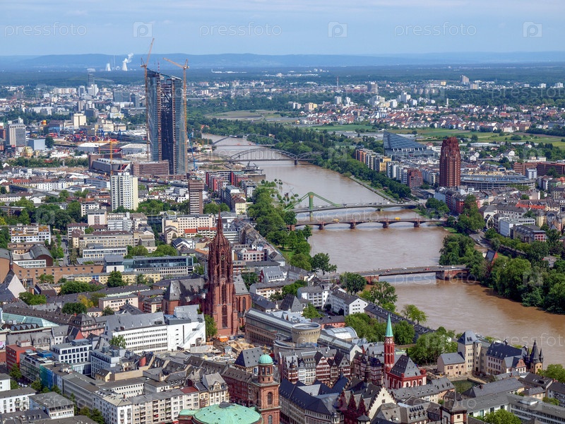 Вид с воздуха на Франкфурт-на-Майне в Германии