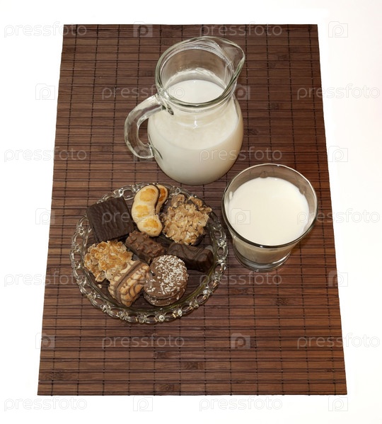 Натюрморт с молоком и печеньем