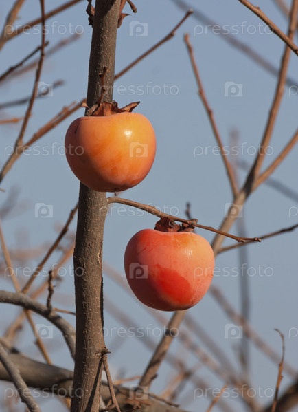 Два плода хурмы на дереве