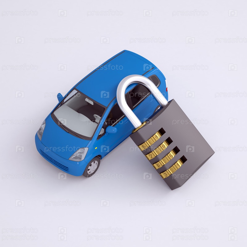 Синий маленький автомобиль и кодовый замок