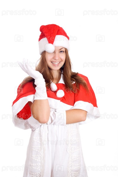 Улыбающаяся молодая женщина в рождественском костюме