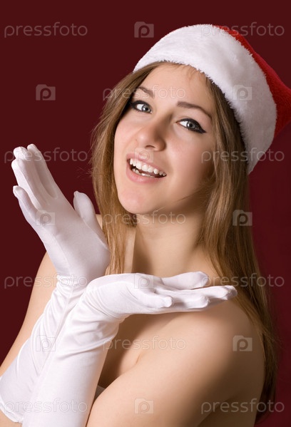 Молодая счастливая девушка в колпаке Санты