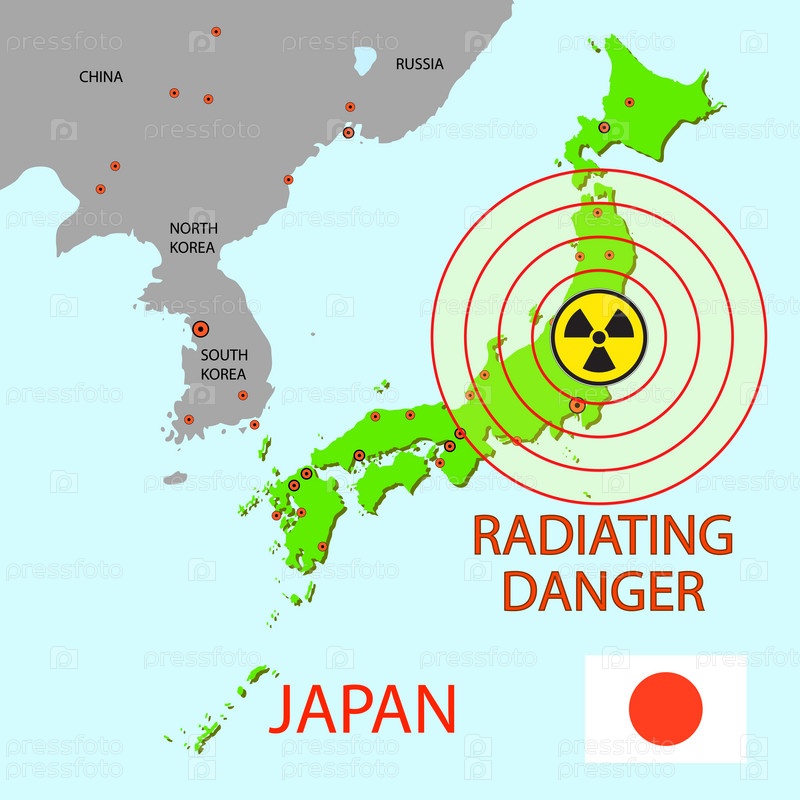 Карта Японии с опасной зоной на атомной электростанции