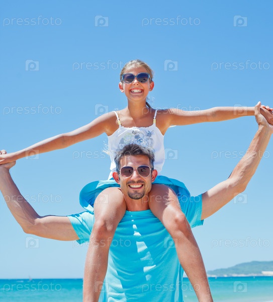 Отец и дочь на пляже
