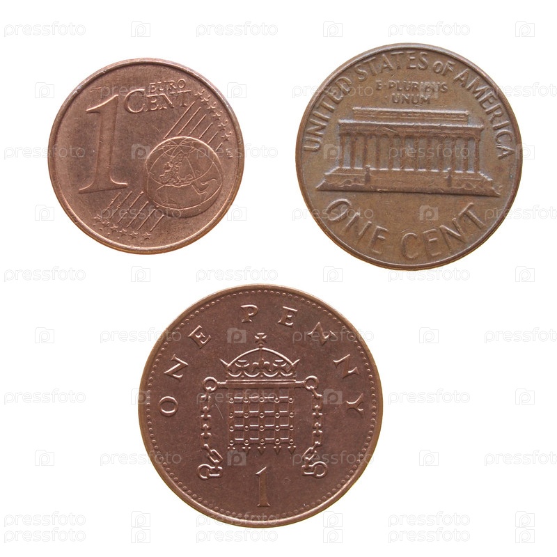 Один евроцент, один доллар и один пенни