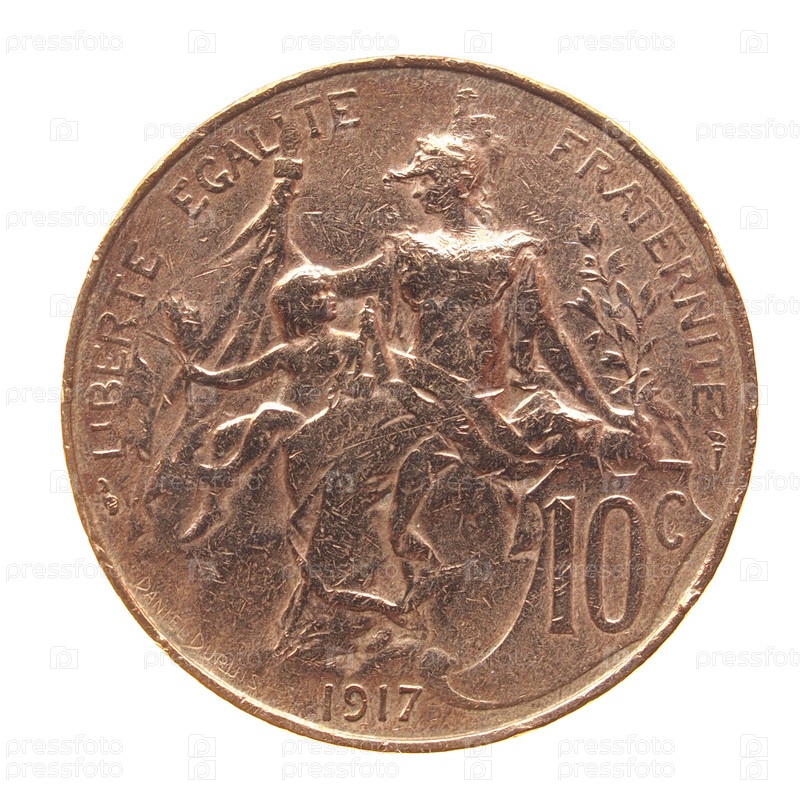 Древняя французская монета на белом фоне