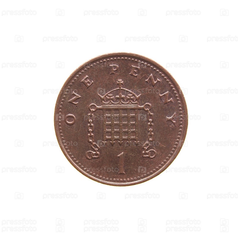Монета один пенни, изолированная на белом фоне