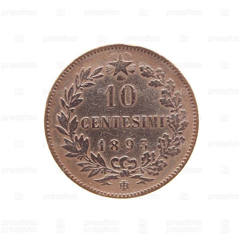 Древняя итальянская монета на белом фоне