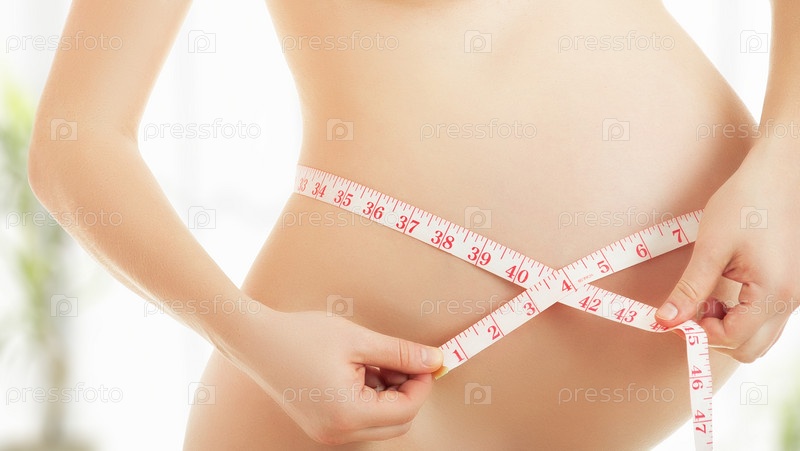 Живот беременной женщины с измерительной лентой