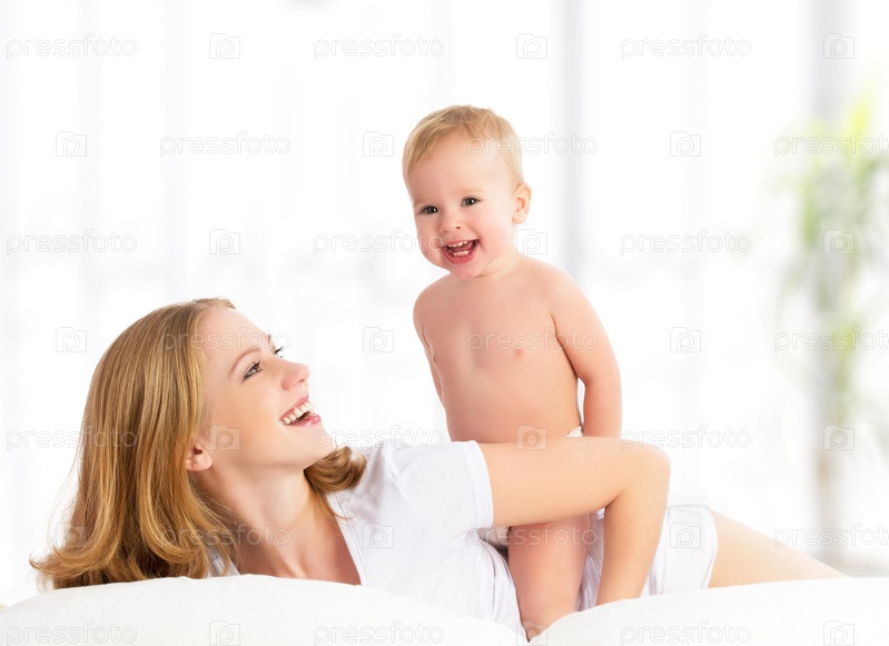 Счастливая мать и ребенок на кровати