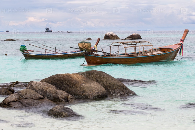 Традиционная тайская лодка на пляже, остров Липе, Таиланд