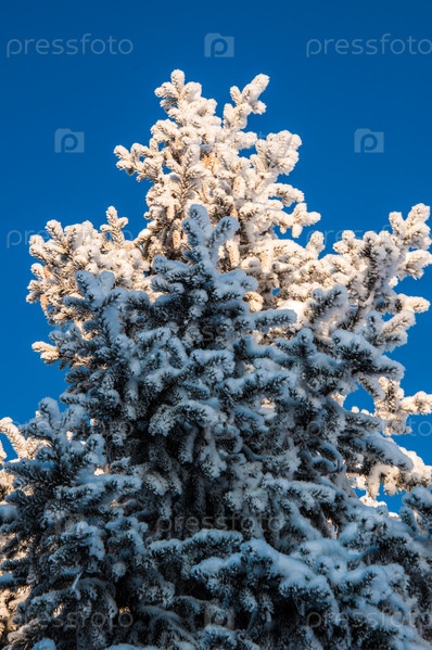 Хвойное дерево и мягкий пушистый снег