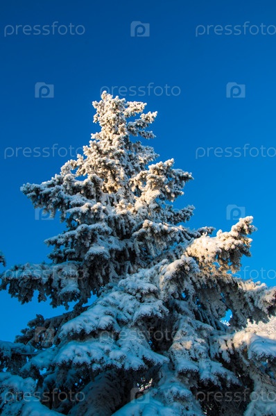 Хвойное дерево и мягкий пушистый снег