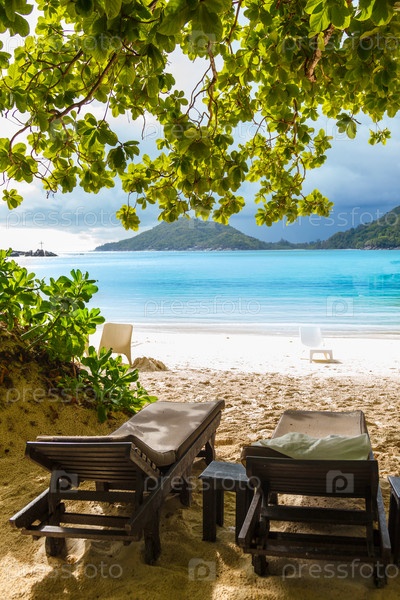 Лежаки на пляже на Сейшельских островах