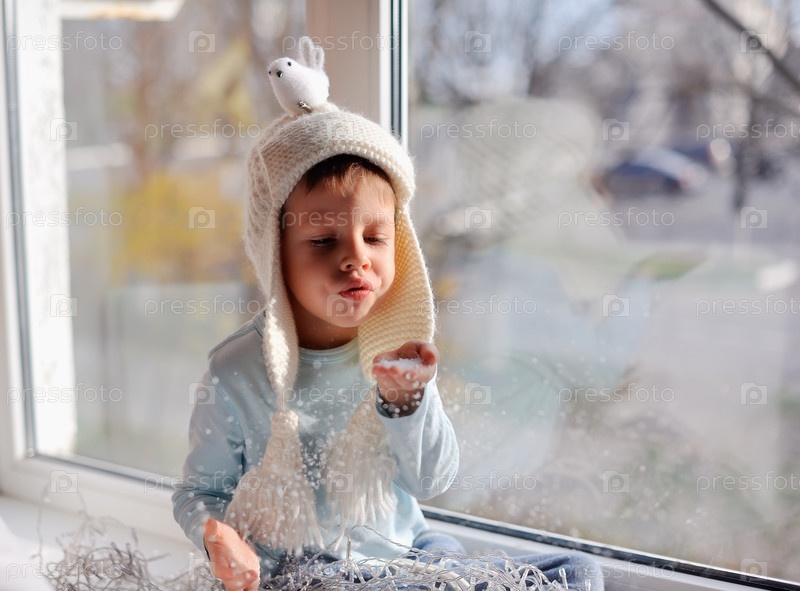 Ребенок сидит на подоконнике