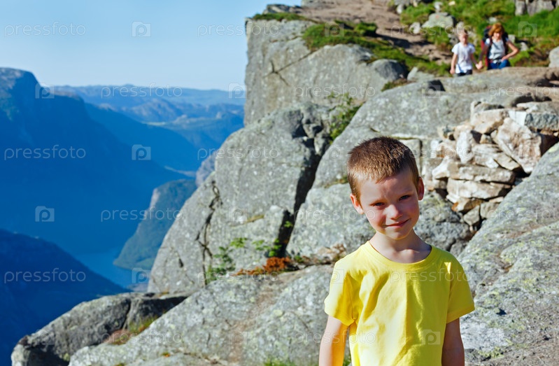 Счастливая семья на утесе Прекестулен, Норвегия