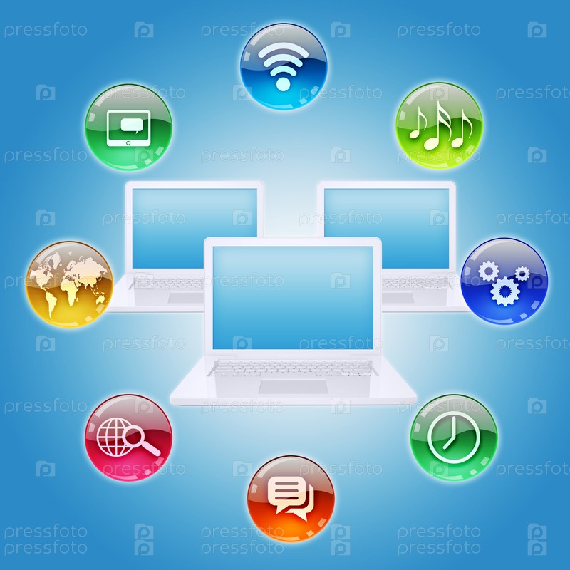 Ноутбук и иконки программ