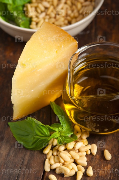 Ингредиенты для итальянских макарон с песто из базилика