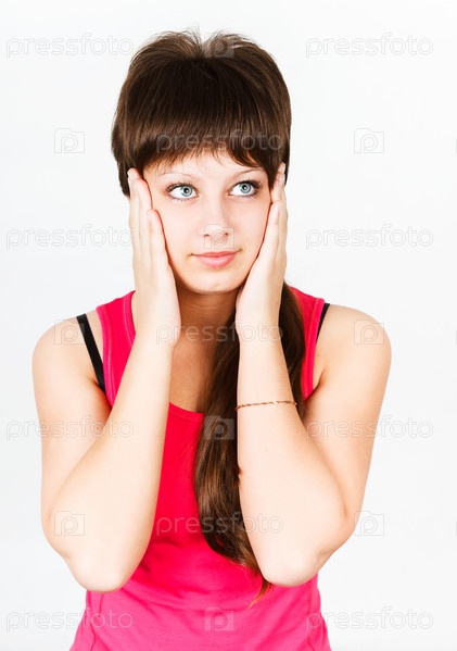 Головная боль. Девушка держит голову в руках