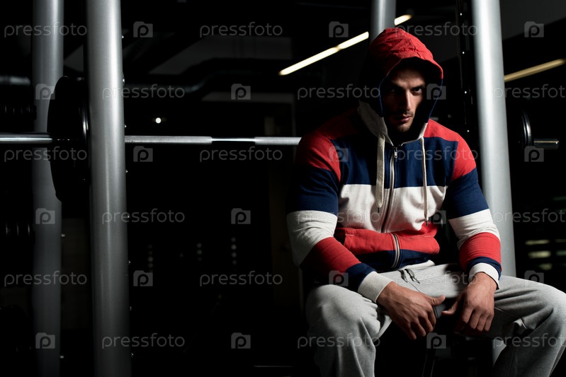 Привлекательный молодой человек сидит на скамейке