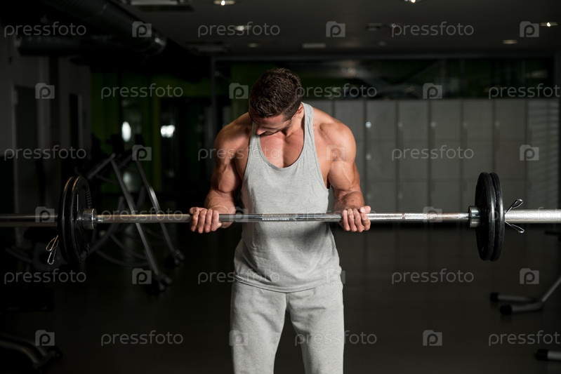 Мужчина со штангой в тренажерном зале