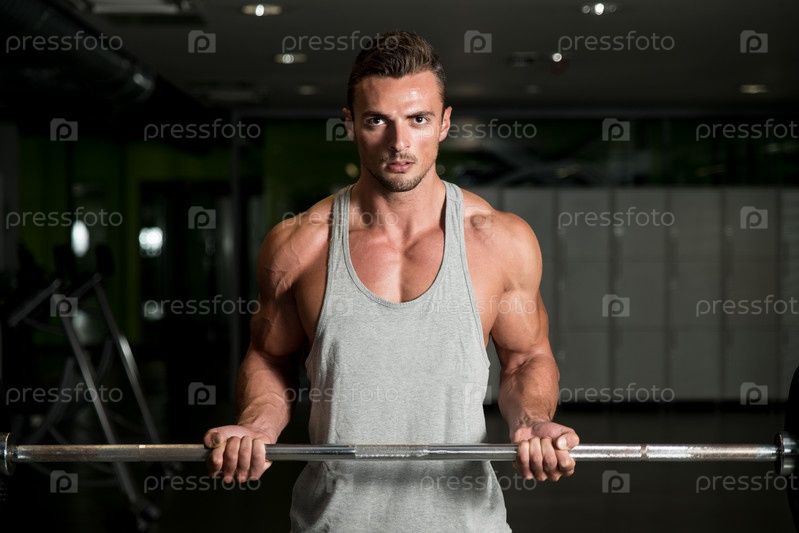 Мужчина со штангой в тренажерном зале