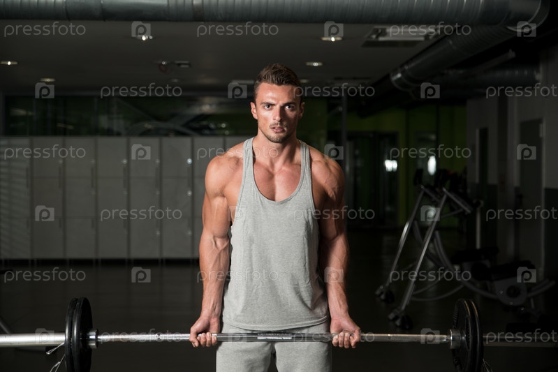 Мужчина со штангой в тренажерном зале