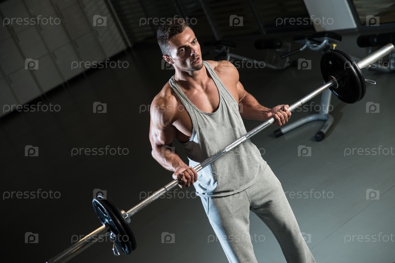 Мускулистый мужчина со штангой в тренажерном зале