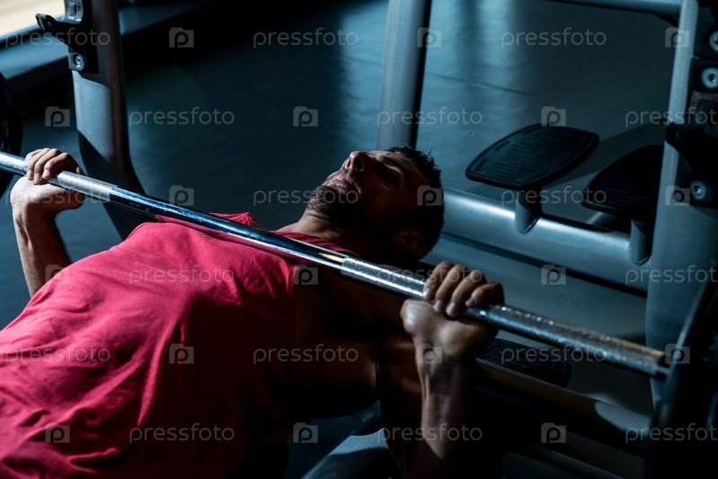 Мужчина со штангой на скамье