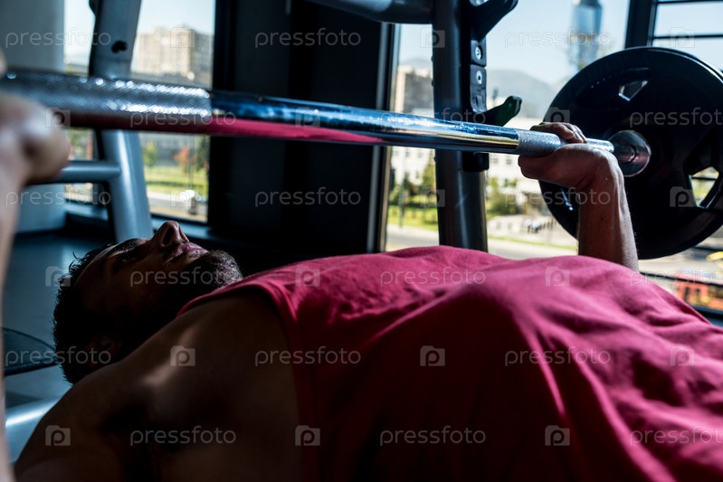 Мужчина со штангой на скамье