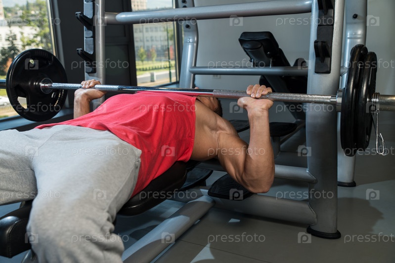 Мужчина со штангой на скамье
