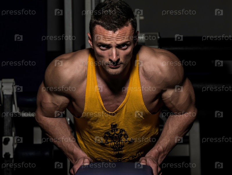 Мужчина отжимается в тренажерном зале