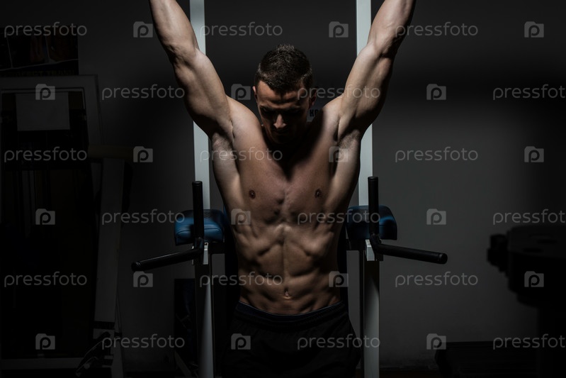 Красивый мужчина занимается в тренажерном зале