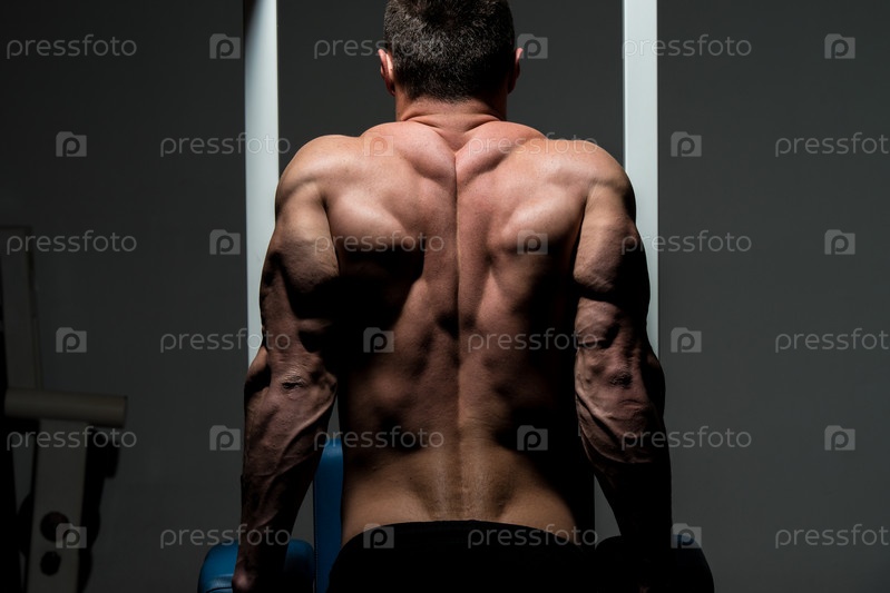 Красивый мужчина занимается в тренажерном зале