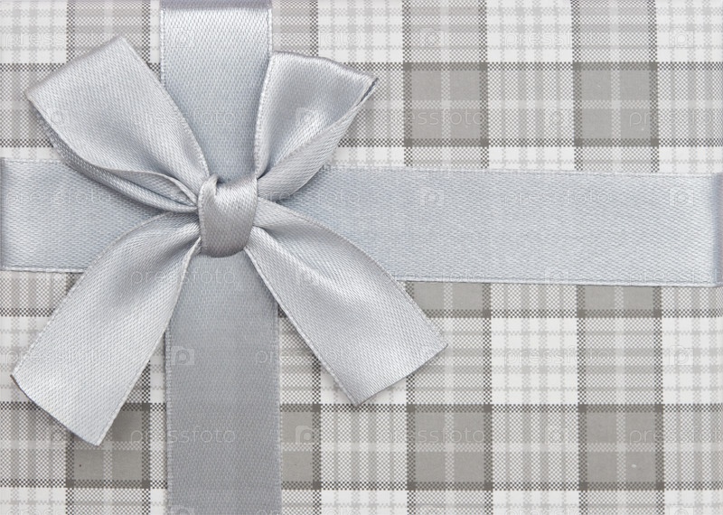 Подарочная коробка с серебряной лентой и бантом