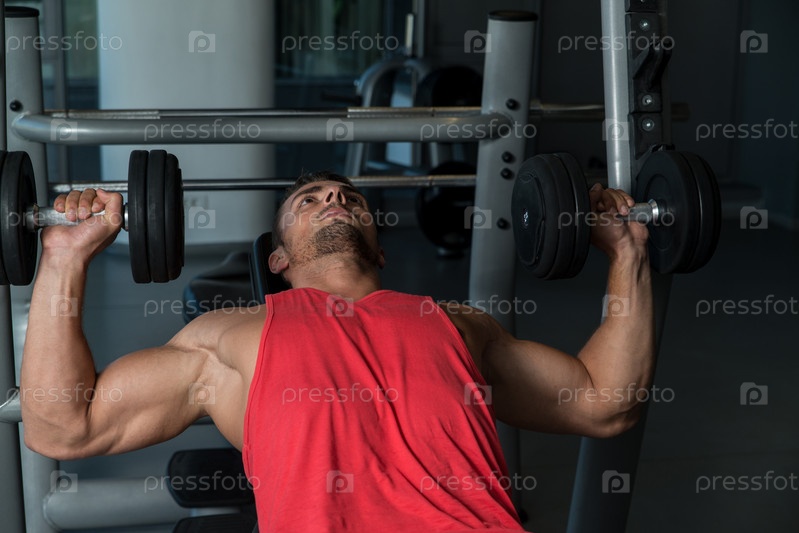 Мужчина поднимает гантели