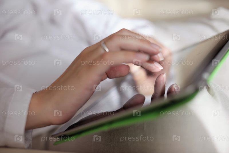 Женщина использует планшетный ПК дома