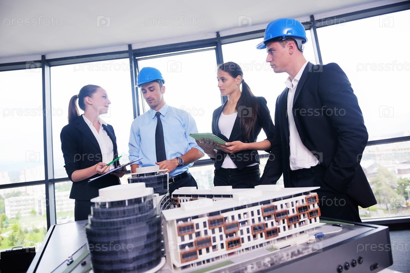Деловые люди и инженеры на совещании