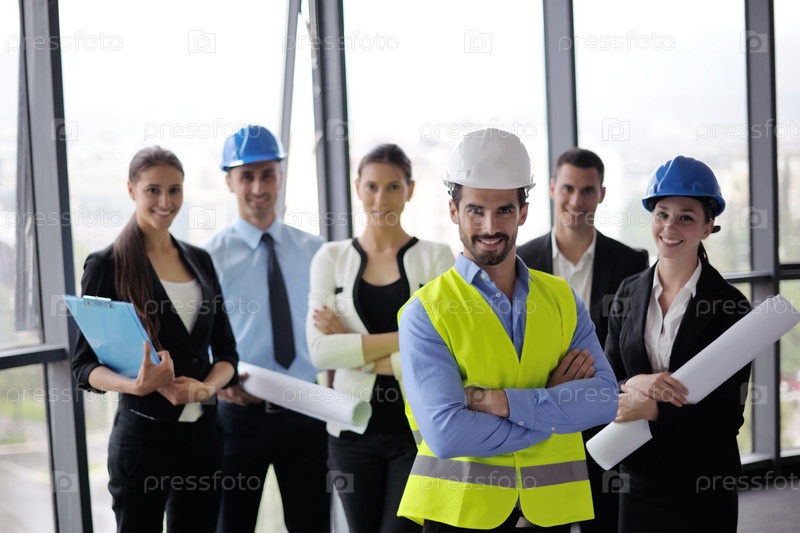 Деловые люди и инженеры на совещании