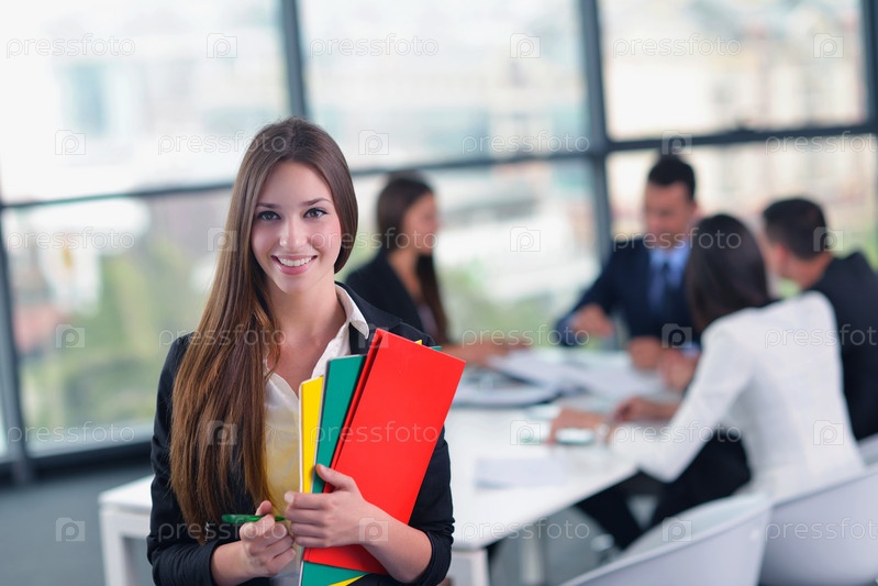 Деловая женщина с ее сотрудниками в офисе