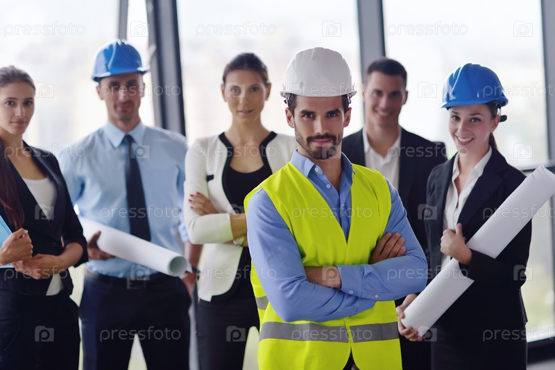 Деловые люди и инженеры на совещании