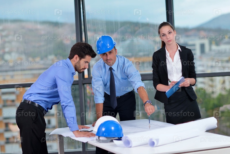 Деловые люди и инженеры на совещании