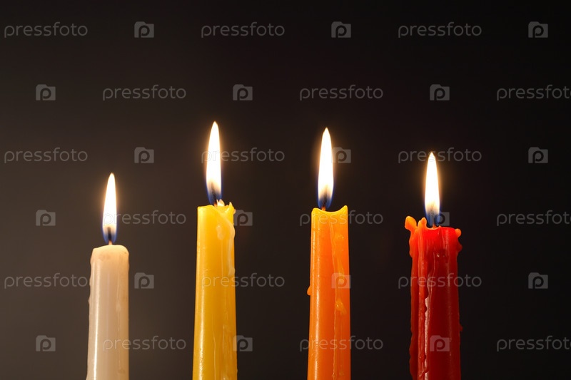 Набор из четырех цветных свечей на темном фоне