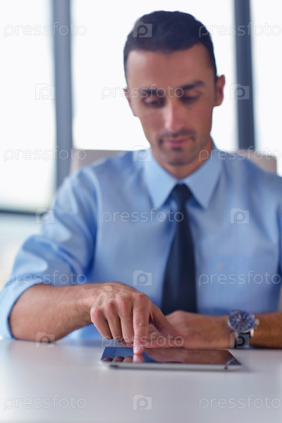 Деловой человек использует планшетный компьютер в офисе