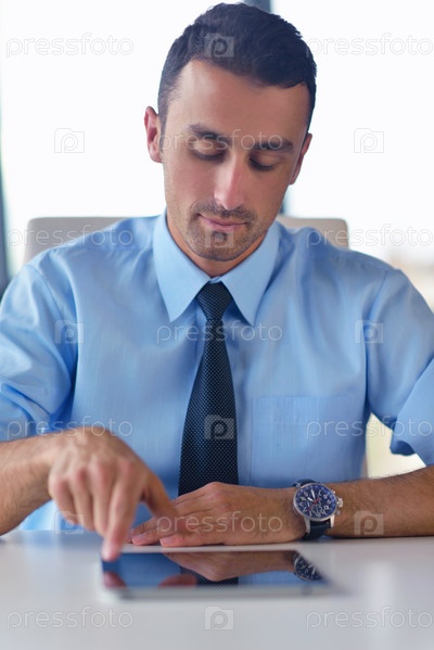 Деловой человек использует планшетный компьютер в офисе